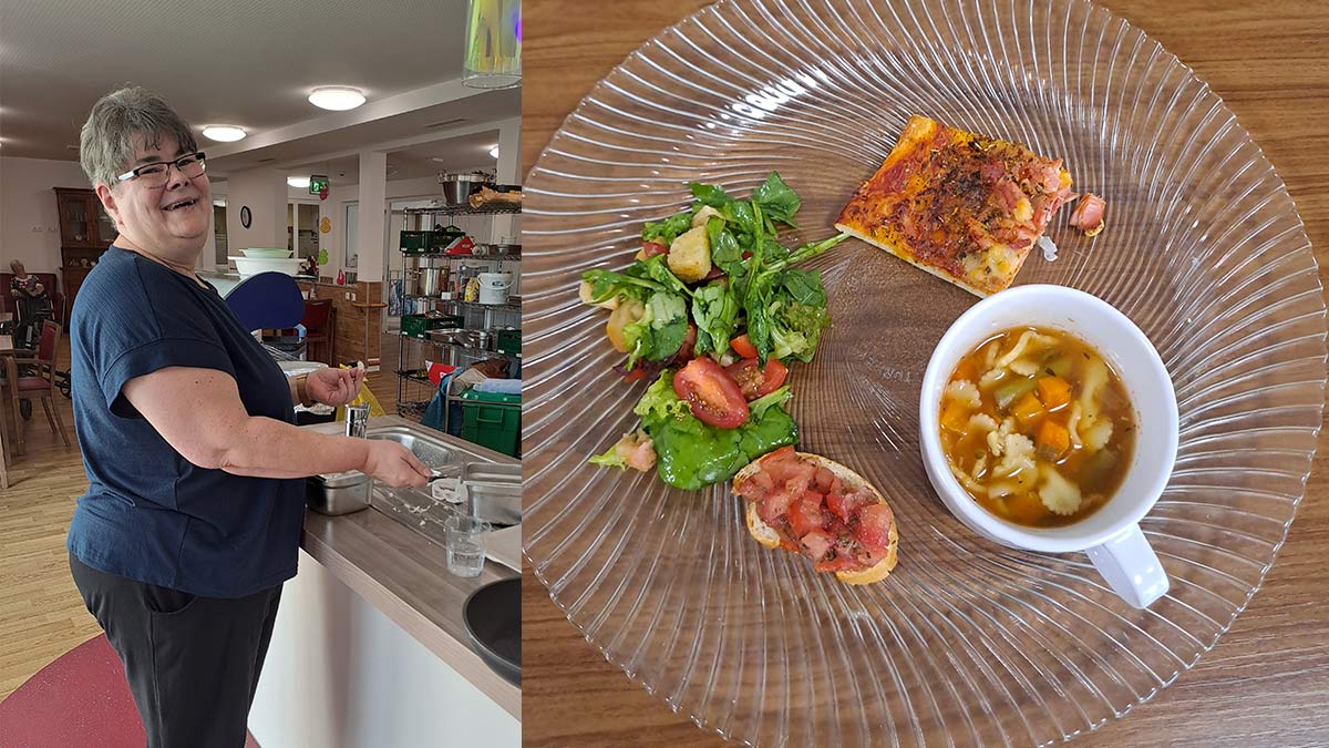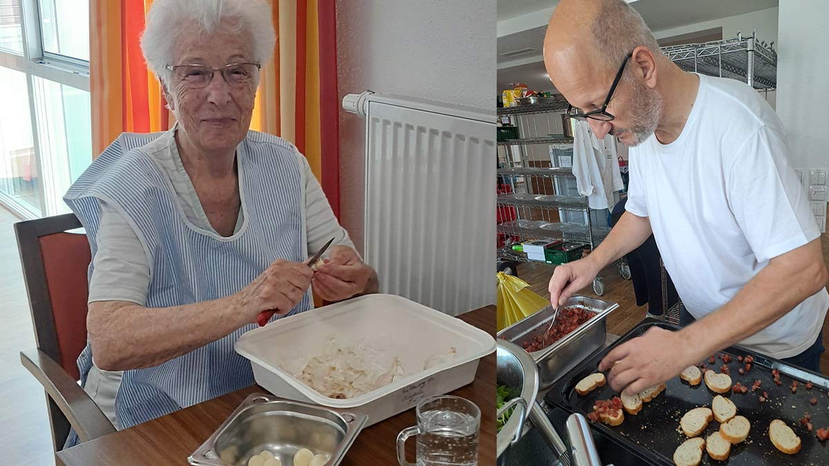 Ein ganz besonderer Tag stand im „Haus am Mühlenweg“ in Ottweiler-Fürth bevor: Andreas Hank, Catering-Koordinator im Schwesternverband, zauberte mit Unterstützung aus dem Team der Einrichtung ein italienisches Menü der Extraklasse. Besonderer Dank gilt hier auch Bewohnerin Ruth Glock, welche ebenso fleißig mit half und zum Gelingen beitrug. Schon im Vorfeld war die Vorfreude bei den Bewohner*innen und auch bei den Mitarbeitenden riesengroß – voller Erwartungen fieberte man diesem kulinarischen Ereignis entgegen.
